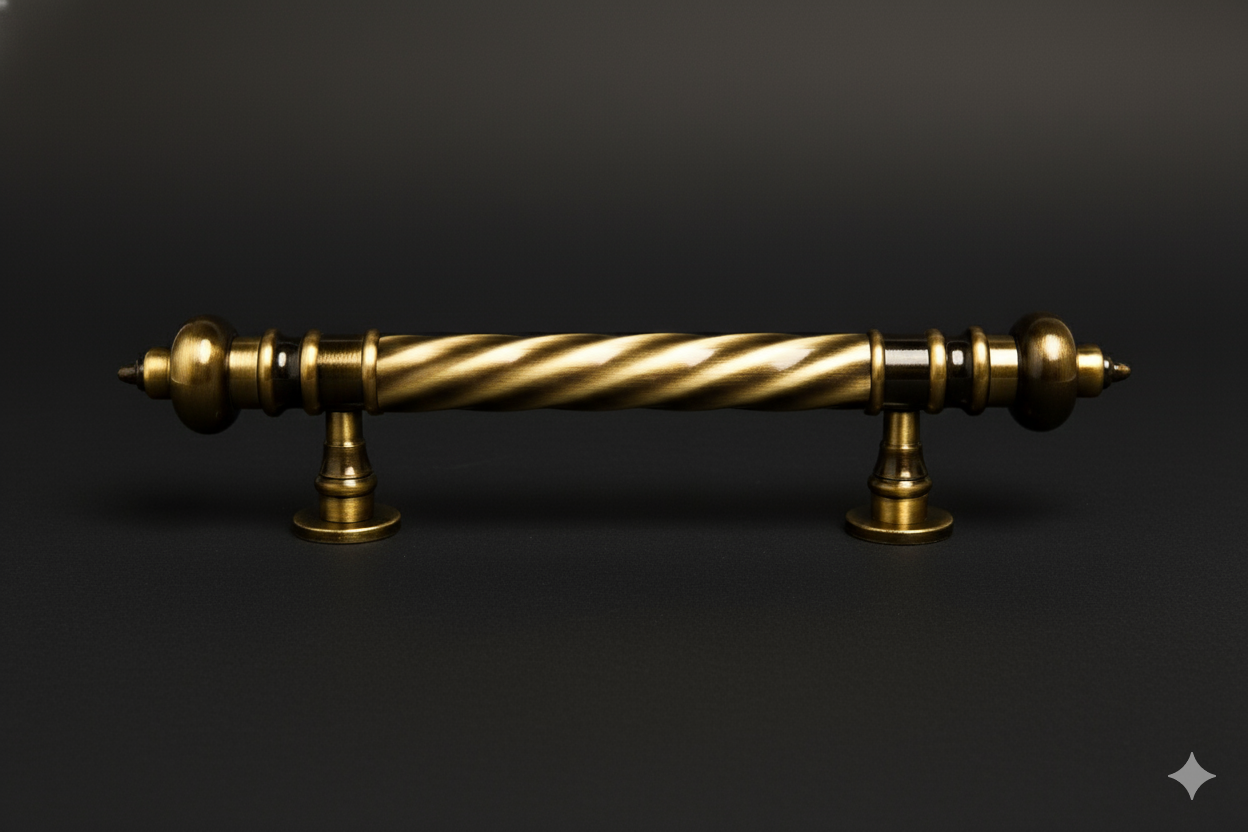 Add timeless charm to your doors with our Antique Twisted Brass Door Handle. Crafted from premium solid brass, this handle features a hand-finished twisted bar design with ornamental end caps, embodying classic luxury and superior craftsmanship.